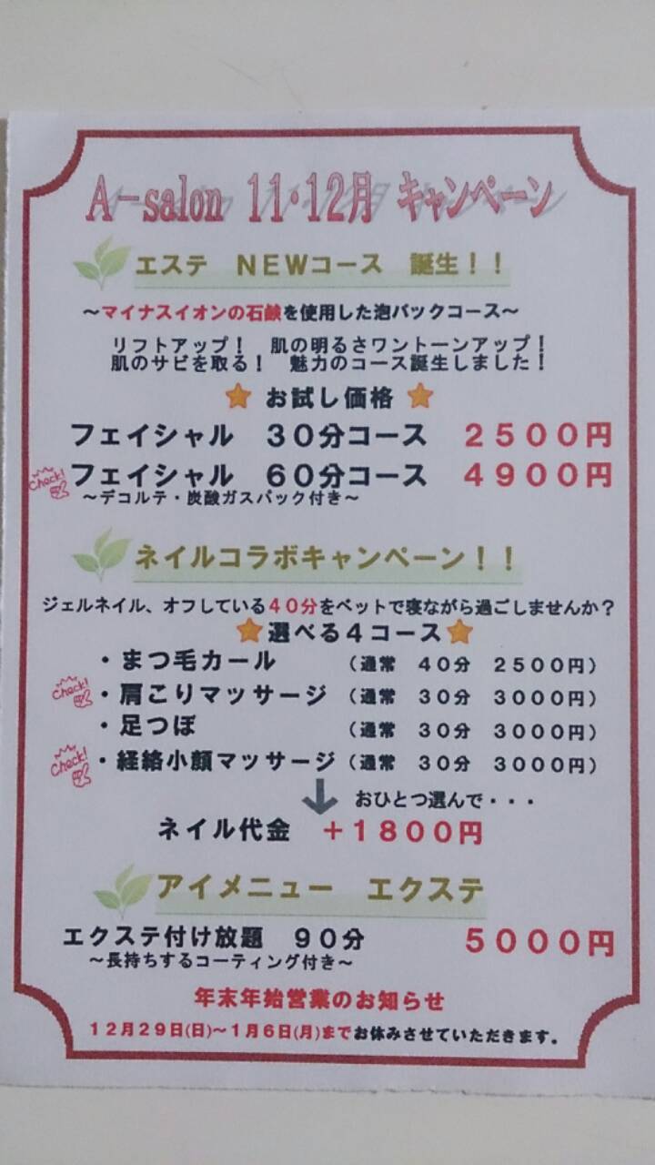 MENU トップページ インフォメーション エステ(フェイシャル&ボディ) ブライダル 高速脱毛&まつ毛カール お問い合わせ アクセス yoga&exercise Facebook Instagram BLOG INFORMATIONお知らせ 2013/10/31(木) 18:32 11月・12月 キャンペーン☆ エステ&ネイル コラボキャンペーン スタート致します!! 皆様のご予約お待ちしております☆