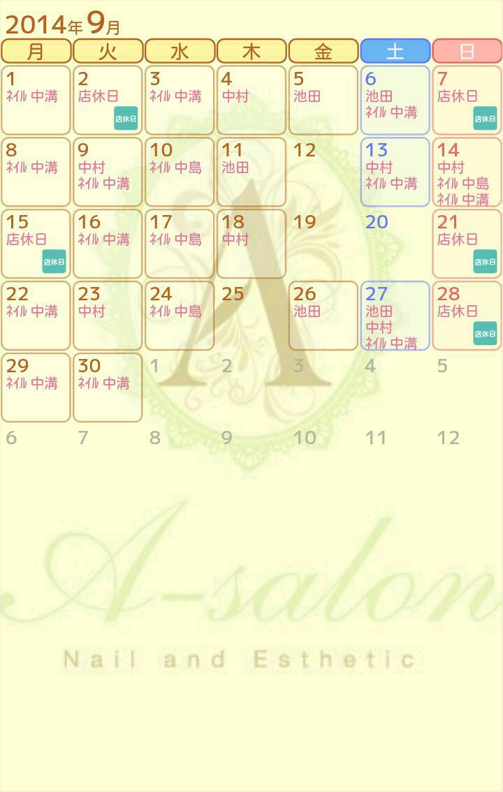 MENU トップページ インフォメーション エステ(フェイシャル&ボディ) ブライダル 高速脱毛&まつ毛カール お問い合わせ アクセス yoga&exercise Facebook Instagram BLOG INFORMATIONお知らせ 2014/08/04(月) 23:40 9月のお休み 9月のシフト作成しました。 アーユルヴェーダの中村 エステの池田 ネイルの中島&中溝 みなさまからのご予約お待ちしております☆
