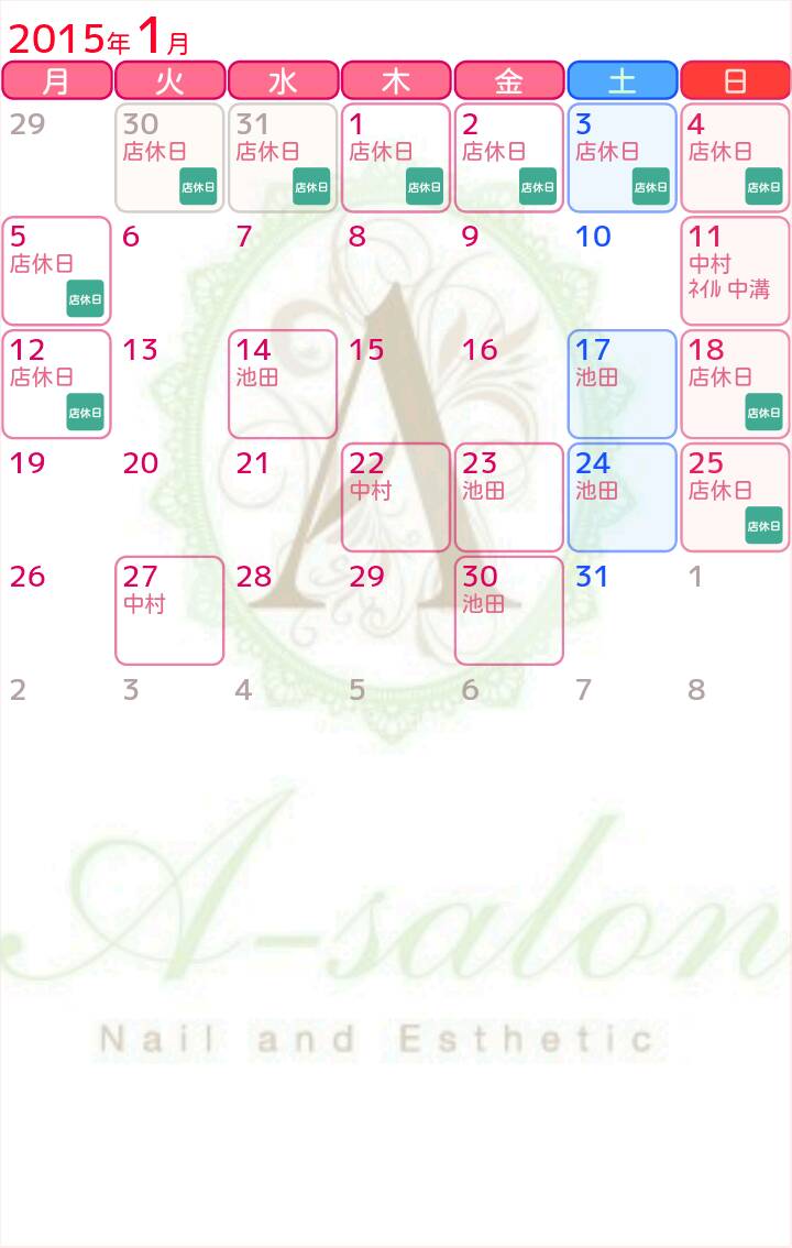 MENU トップページ インフォメーション エステ(フェイシャル&ボディ) ブライダル 高速脱毛&まつ毛カール お問い合わせ アクセス yoga&exercise Facebook Instagram BLOG INFORMATIONお知らせ 2014/12/04(木) 18:18 ★1月のお休み★ 一月のシフトです! みなさまのご来店心よりお待ちしております\(^-^)/ ネイル 中溝 エステ 池田 アーユルヴェーダ&アイ 中村