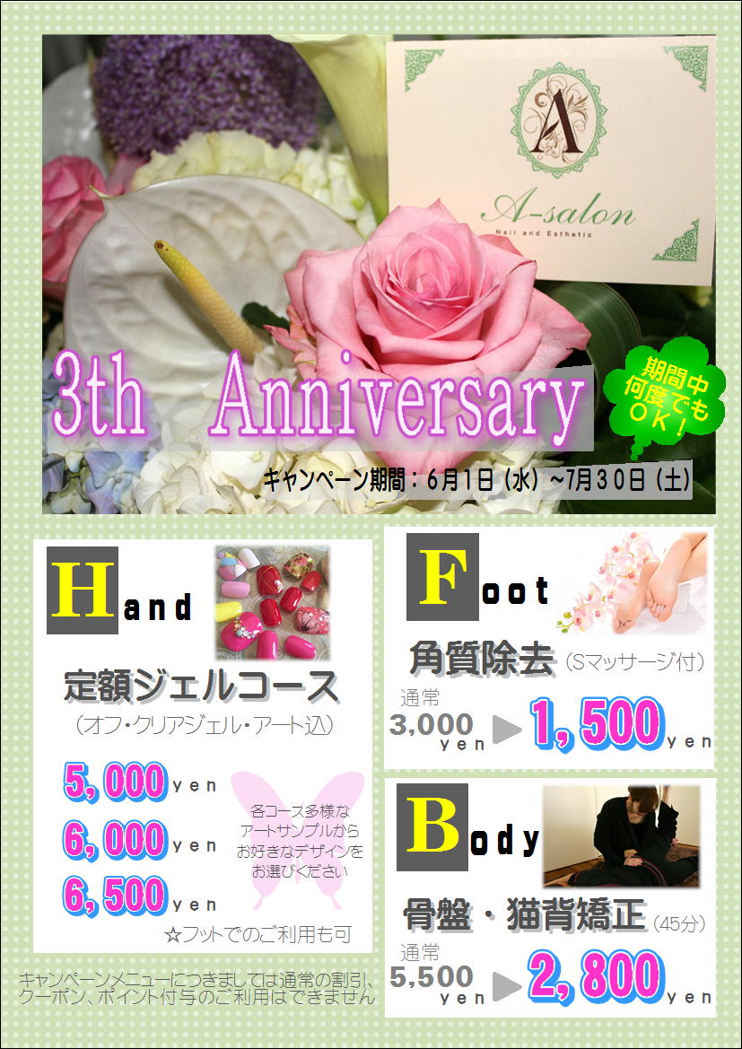 MENU トップページ インフォメーション エステ(フェイシャル&ボディ) ブライダル 高速脱毛&まつ毛カール お問い合わせ アクセス yoga&exercise Facebook Instagram BLOG INFORMATIONお知らせ 2016/06/01(水) 01:18 3周年キャンペーン 三周年キャンペーンメニュー始まりました☆ 皆様のご予約心よりお待ちしております。